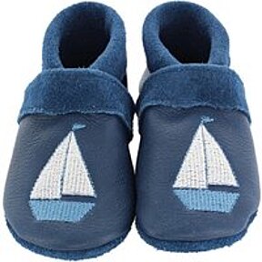 Baby und Kinder Hausschuhe Krabbelschuhe Ecopell Leder Schiff marine Gr.27/28