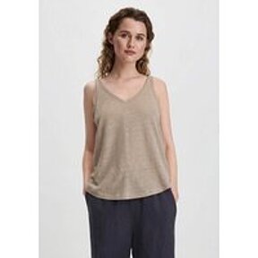 hessnatur Damen Jersey Top Regular aus Leinen und Bio-Baumwolle - beige - Größe 42