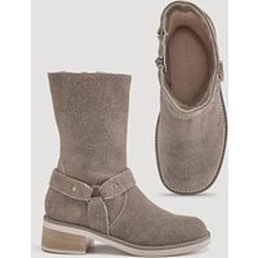 hessnatur Damen Biker Boots aus chromfrei gegerbtem Velours-Leder - grau - Größe 37