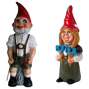 Große Gartenzwerge Zwergenfrau H 75 cm mit Bayer Seppel Figur Zwerg H 80 cm stehend