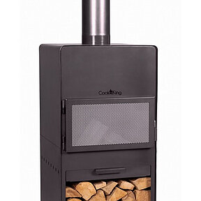 Gartenkamin "Vento" Pizza-Gartenofen H 150 cm zum Grillen Heizen mit Backfach und Kaminregal