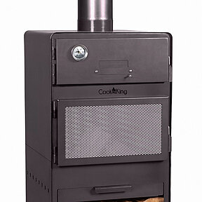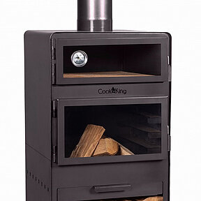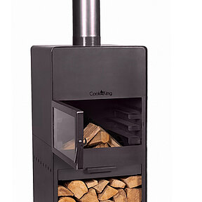 Gartenkamin Vento Pizza-Gartenofen Glastür H 150 cm zum Grillen Heizen Backen und Kaminregal