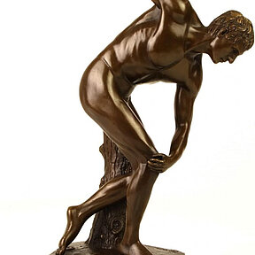 Bronzefigur Bronzeskulptur Bronze Diskobolos auf Marmorsockel H 38 cm griechische Statue
