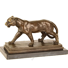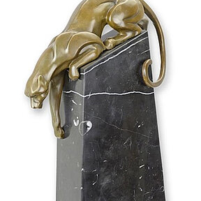 Bronzefigur Bronzeskulptur Tierfigur Panther aus Bronze auf Marmorblock H 34 cm Deko Figur Skulptur