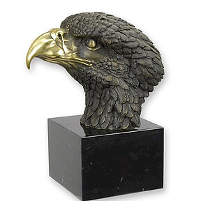 Bronzefigur Bronzeskulptur Bronze Adler Kopf auf Marmorsockel H 28 cm Bronze Figur