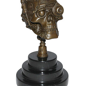 Bronzefigur Bronzeskulptur Bronze Steampunk Schädel auf Sockel Höhe 19 cm Skelett Figur