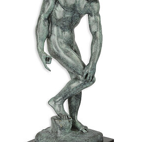 Bronzefigur Bronzeskulptur "Männlicher Akt Adam” nach Rodin aus Bronze auf Marmorsockel H 29 cm