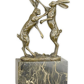 Bronzefigur Bronzeskulptur Bronze Hasen boxend auf Marmorsockel H 24,5 cm Bronze Figur