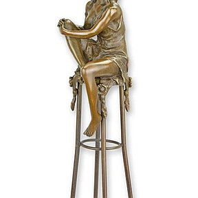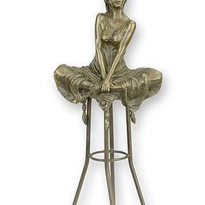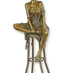 Bronzefigur sinnliche Frau sitzend auf Barhocker H 25,7 cm Bronzeskulptur Bronze Figur aus Bronze