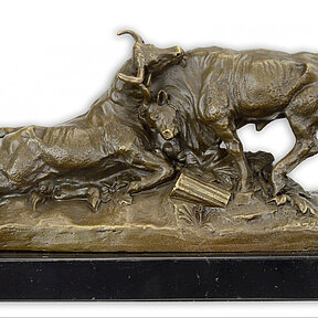 Bronzefigur Bronzeskulptur 2 kämpfende Bullen um Revier auf Sockel H 12 cm Bronze Figur