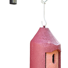 Naturschutzprodukt Nisthöhle Typ 2M in rot Brutinnenraum hängend FT Nisthilfe Flugloch 26 mm