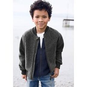 hessnatur Kinder Walk-Bomberjacke aus Bio-Merinowolle - grau - Größe 98/104